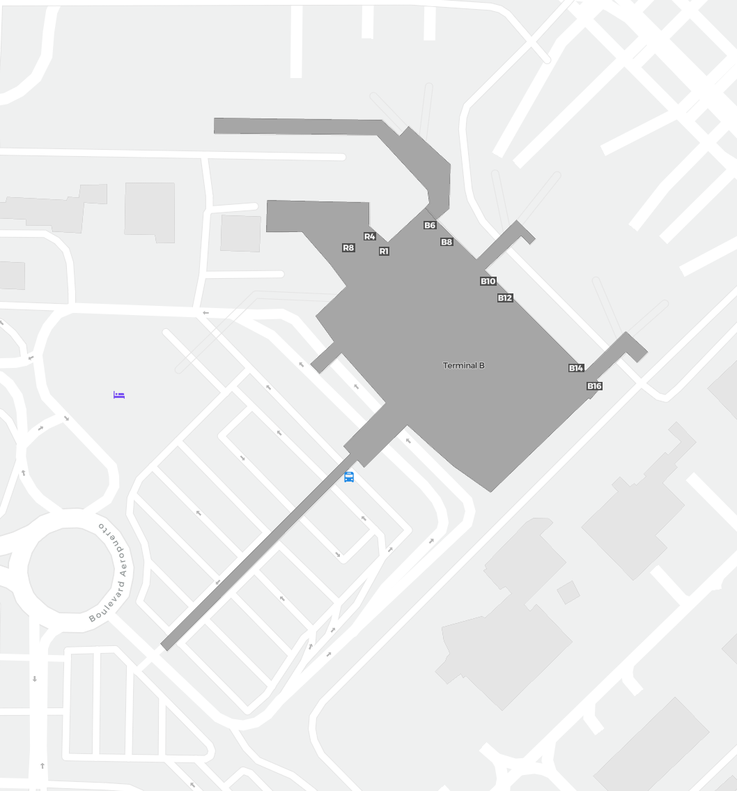 This is a zoomable map over Monterrey (MTY). The map can give you an overview of the outdoor area with terminals, parkings, and at some airports also details of gates, car rental facilities, and other amenities if you zoom in.