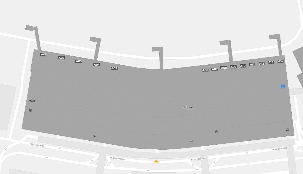 This is a zoomable map over Bremen (BRE). The map can give you an overview of the outdoor area with terminals, parkings, and at some airports also details of gates, car rental facilities, and other amenities if you zoom in.