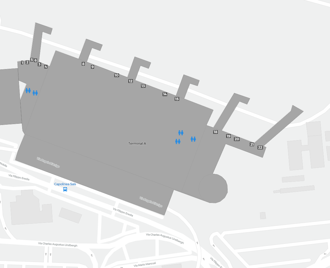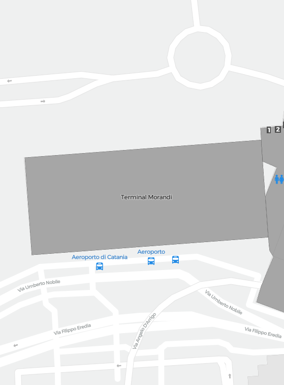 This is a zoomable map over Catania (CTA). The map can give you an overview of the outdoor area with terminals, parkings, and at some airports also details of gates, car rental facilities, and other amenities if you zoom in.
